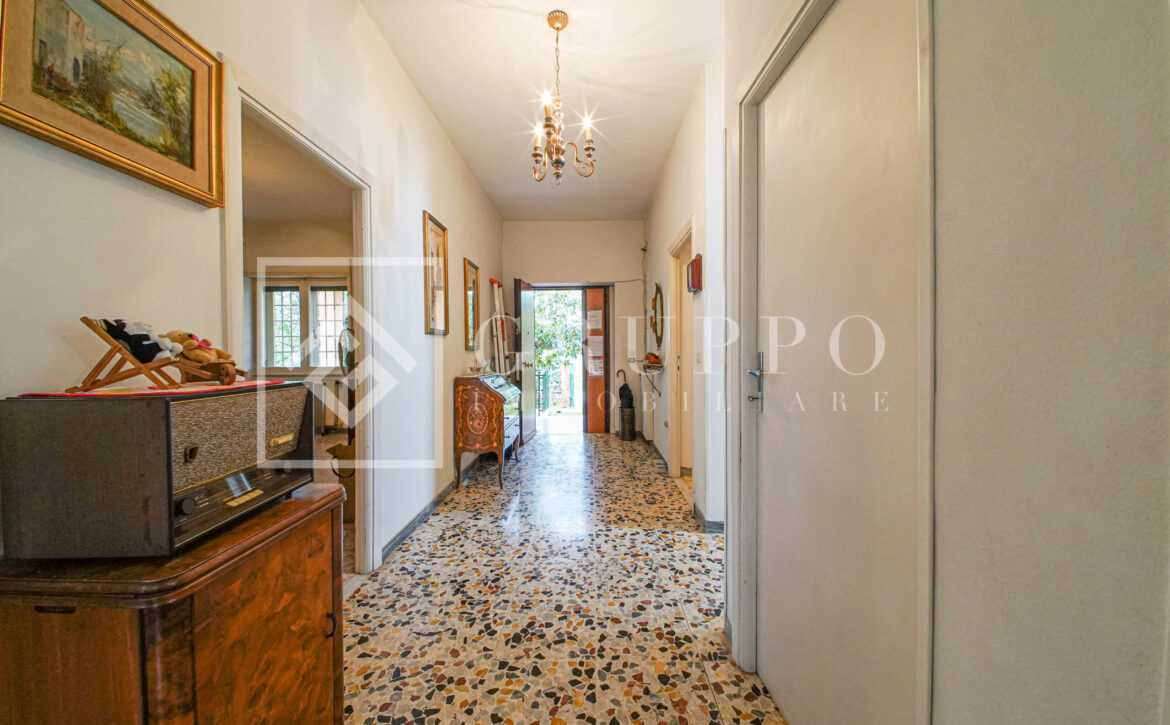 La villa necessita di interventi di ristrutturazione, offrendo così la rara opportunità di personalizzare gli ambienti secondo il proprio gusto, valorizzando al massimo una struttura dalle grandi potenzialità architettoniche.