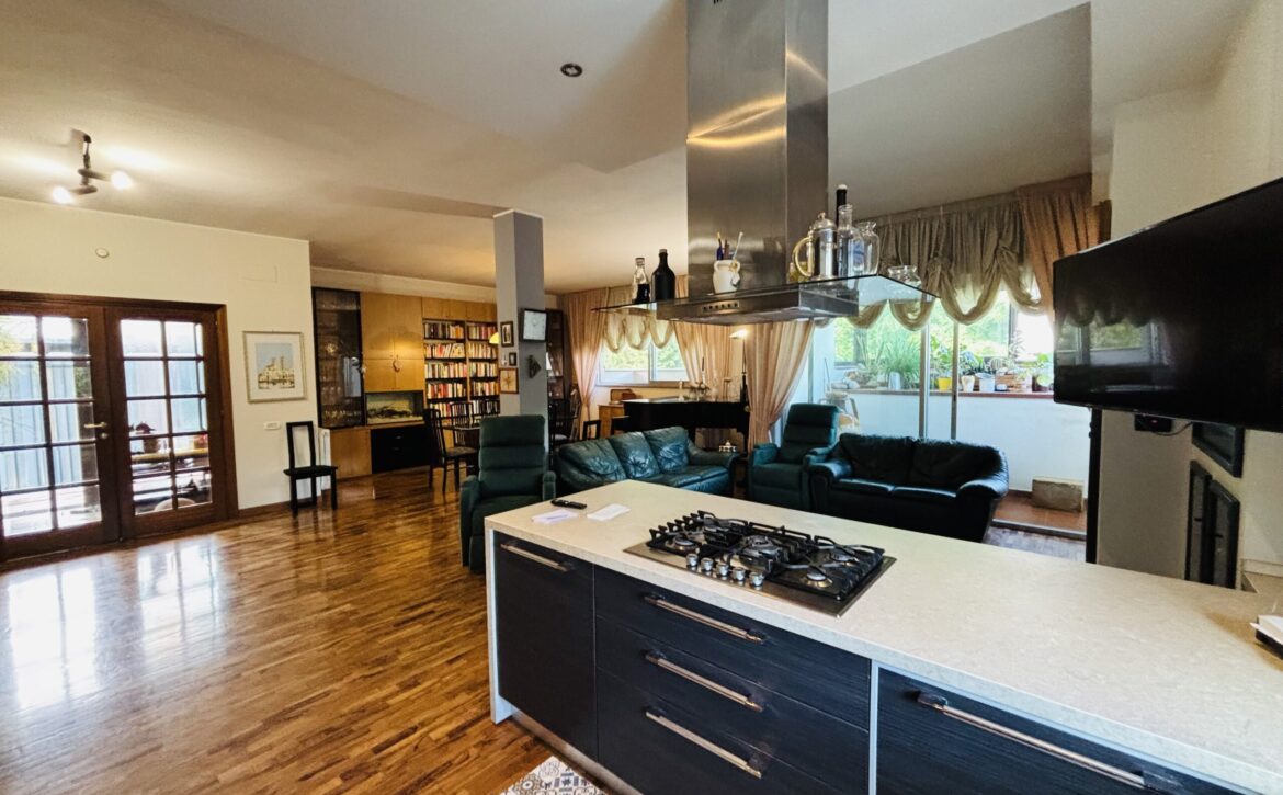 L’abitazione gode di ampie e luminose stanze rifinite con parquet, dotato di porta blindata, termocamino,  impianto di allarme, cancello elettrico, riscaldamento autonomo, condizionatori caldo/freddo e caldaia per l’acqua sanitaria, per garantire comfort in ogni stagione.
